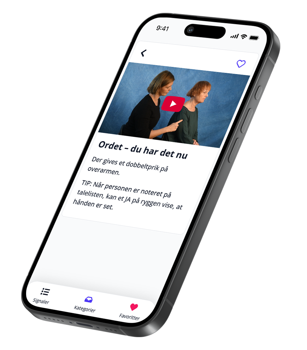På haptisk.dovblinde.dk finder du en komplet liste over alle signalerne med korte tekst- og videobeskrivelser.